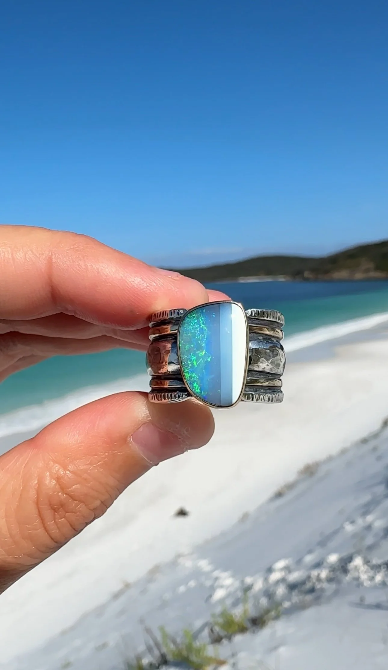 Mahkato Silver only uses SOLID opals. The true colour of your opal ring may vary slightly to the photograph. The colour of opals varies greatly with light and shadow. It’s also important to note that they’re a naturally occurring material and might include natural ‘imperfections’.